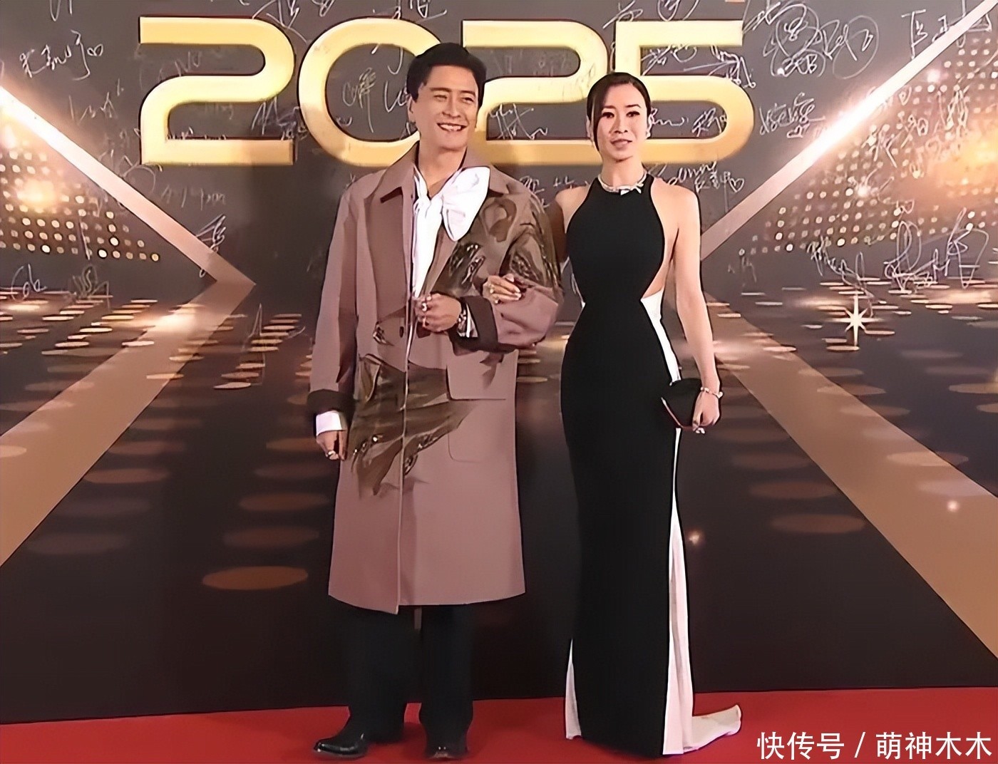 陈炜和陈展鹏通盘走红毯,陈炜52岁、陈展鹏48岁,加起来适值100岁,TVB授奖礼红毯上的熟样子年岁王人不小了。