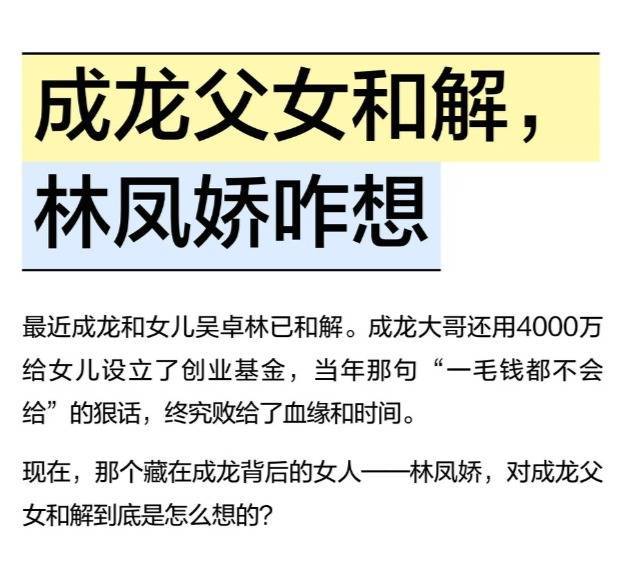 成龙和我方的女儿小龙女吴卓林息争了,还准备给女儿留4000万